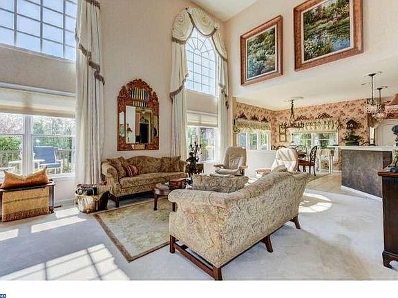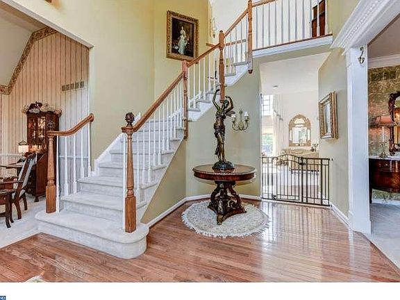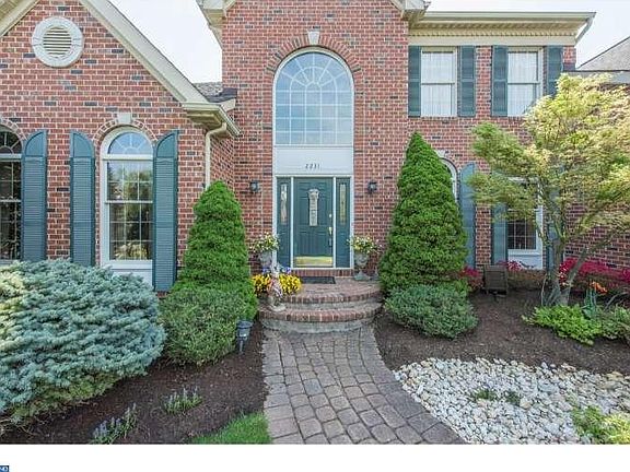 Style, sophistication, elegance and luxury all on the 12th hole of a manicured golf course. Spectacular first floor Master Suite, open flowing floorplan and upscale amenities you won't find anywhere else. Located in the Estates of Bucks County Country Club with walking trails, sidewalks and bounded by the beautifully tended course, the exterior of this home is sumptuously gardened. Specimen plantings, statuary, a sparkling water feature, high voltage landscape lighting and a wonderful Trex deck and beautiful gazebo with lighting and fan and cupola are all enclosed by metal fencing in the rear. The deck has a marvelously long view of the course and is watched over by a weather vane crane on the rooftop. Landscape sprinklers keep the plants well hydrated with no hose to lug around. The front is also lovingly gardened and features a sweet landscape bridge and deluxe paver walkway. Enter through the front door with stained glass sidelights to the dramatic two story foyer. A magnificent Schonbeck chandelier on a Genie lift and ceiling medallion, hardwood floors, deep dentil moldings and a gracefully curved staircase are features here. To the left is the formal living room with vaulted ceiling, crown and chair rail molding and recessed lighting. The dining room is opulent and both rooms share the lavish Shaw carpeting that, along with hardwood and stone floors, are found throughout the home. The powder room features floor to ceiling stone, furniture grade vanity and Weinstein gold fixtures. The soaring family room features two story palladium windows dressed with elegant custom drapes. Professionally decorated with an eye for luxurious appointments; this home is chic and comfortable. The family room is open to the breakfast room and kitchen featuring granite counter tops, double wolf wall ovens and cooktop, and counter seating. A main floor laundry room has access to the two car garage. The jewel of the first floor is the master bedroom suite with Venetian plaster walls, double walk in closets and your choice of opulent chandelier or Casablanca ceiling fan. A spacious master bath with soaking tub and glass shower completes the suite. The second floor features three lush beautifully decorated bedrooms, a well-appointed bath and balcony overlook leading to the spacious loft area. Media hub, office, game room-this flexible space is suited for a variety of uses. Full basement and crawlspace, new two zoned heating/AC units and so much more!