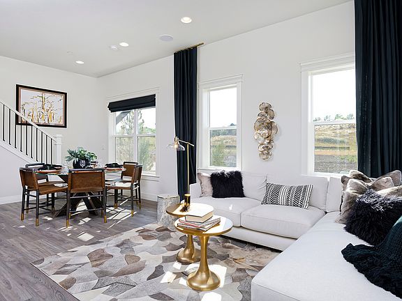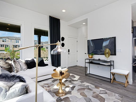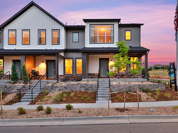 Stunning solar-powered Spring Move-In home in the enviable new Downtown Superior community located just 10 minutes from Boulder with shops, parks, and miles of trails just steps from your front door. This luxe 3-Bedroom home offers stunning designer curated interior finishes and plenty of flex space for the entire family. Step from the wide covered front porch on this end-unit home into the open concept main floor, featuring a light filled living room and dining area that faces the eat-in kitchen with center island. Stylish kitchen finishes include black cabinetry, Calacatta Leon Quartz counters, marbled mosaic tiled backsplash, upgraded lighting features and durable 7" plank wood flooring. Our chef kitchen package offers a suite of stainless KitchenAid appliances including a french door refrigerator, 5-burner gas range, Energy Star dishwasher, and stainless hood. *Photos show finished home of similar floorplan*