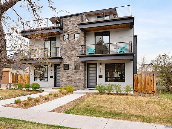 Experience modern luxury in this stunning duplex tucked in the heart of LoHi. Just three years old, this residence boasts sleek contemporary design, city views and multiple outdoor spaces, including an expansive rooftop deck. The chef’s kitchen features custom cabinetry, quartz countertops, a spacious center island and dual ovens. The open living area is highlighted by a striking stone fireplace. A floating staircase with raw steel handrails leads to the upper level. The primary suite offers a spa-like five-piece bath and a walk-in closet. A versatile dual-entry bath serves the secondary bedrooms. The third-floor entertainment room, complete with a kitchenette and powder bath, opens to a breathtaking rooftop retreat. The fully finished basement includes a wet bar, perfect for hosting. Enjoy a low-maintenance lifestyle with a turf-installed backyard and a two-car detached garage. Located in vibrant LoHi, this lock-and-leave home is minutes from top restaurants, shops and entertainment.