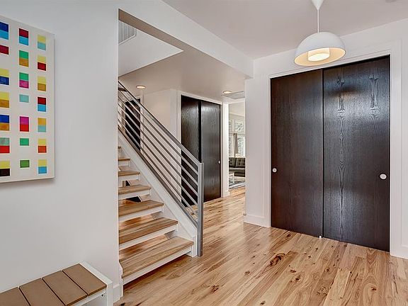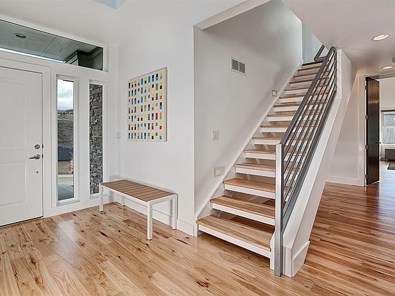 Modern and sleek! This fabulous custom built home is coupled w beautiful views and close proximity to foothills trails. The skylights and abundance of windows, nearly 70, shower the interior with natural light. Slanted ceilings, 8 interior doors, wide plank hickory floors, and floating staircase with metal railing all enhance the total concept. The thoughtfully designed main level is the heart of the home where functional living and entertainment space are combined and easily opened to the outdoors.