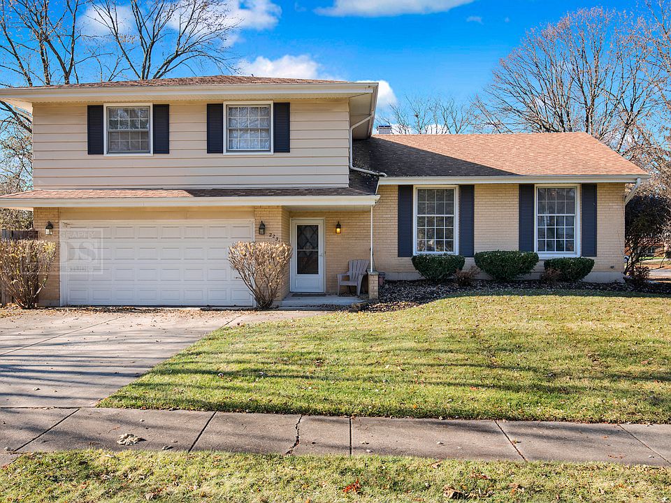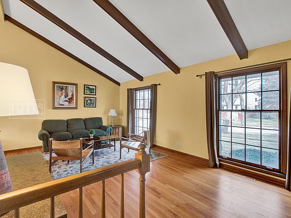 This well-maintained and move-in ready home in Prentiss Creek is spacious, open and bright! Larger than it appears, this home has an updated kitchen and master-bath, 4 bedrooms, a family room, high vaulted beamed ceilings, a large sub-basement and a nice master suite. There are hardwood floors on the main level as well as in all 4 bedrooms! The large living room and dining room both have oversized windows and beamed vaulted ceilings. The newer eat-in kitchen is well-appointed with a large peninsulta, plenty of cabinetry, a serving area with glass upper cabinets and a wall full of windows. The family room is perfect for entertaining with a wet bar, cozy brick fireplace, powder room, and access to the yard/patio. The master bedroom has an updated en-suite bath with walk-in shower. All 4 bedrooms are on the upper level and the huge main hall bath has a large double vanity and separated tub/shower area. The good-sized sub-basement is perfect for all storage needs and could be finished, if desired. The corner lot provides plenty of green space and the fenced off patio provides some privacy. The Prentiss Creek Homes Association fee includes use of the pool, clubhouse and common areas and sponsors social events throughout the year. Located close to schools, parks, shopping, dining & entertainment, transportation and more.