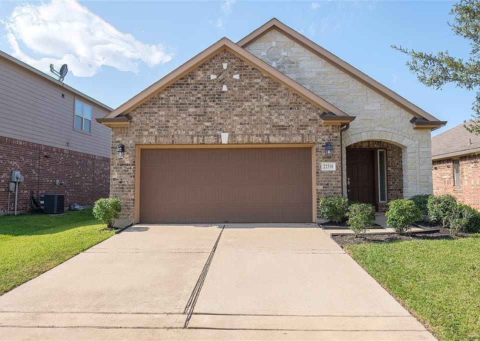 Stunning one story in the beautiful WATERSTONE subdivision. NEVER FLOODED. Brick and Stone 3 bedroom/two bath. Open floor plan with all rooms having new laminate wood style floors with new baseboards. NO CARPET! Recently painted inside and well maintained. Installed new coach in front of garage and also new gutters installed along with full sprinkler system at front and back. Come and make this your new home.