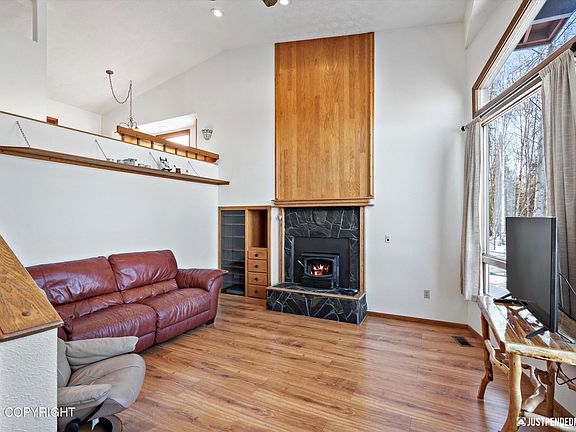 Imagine: Owning your own piece of Alaska with a view of the mountains and inlet right outside your upstairs bedroom window. Enjoying a lovely summer evening playing yard games with friends. Cozying on the couch with a fire going on a winter day. This well maintained, clean home sits just under an acre with everything you need to call home. Featuring: Updated bathrooms & kitchen, vaulted ceiling,dining area, bonus storage area off the downstairs hall closet, 1 storage shed, 2 additional outdoor storage coverings, wood shed, dog run, huge yard and RV parking. Great Alaska home ready for its next owner!