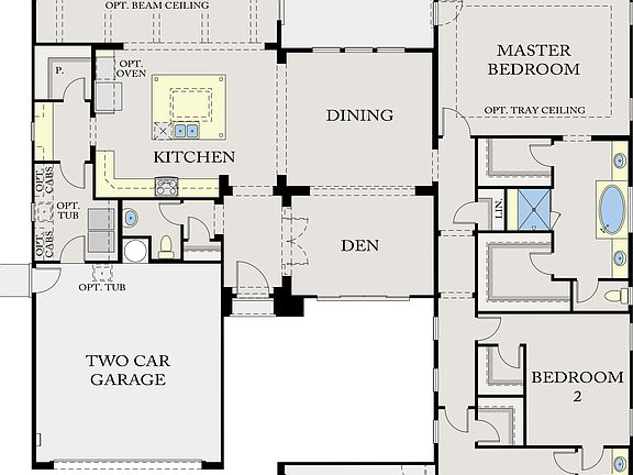 This beautiful single-level home features upgraded Maple cabinets, a gourmet kitchen with stainless steel appliances, a center-island and large walk-in pantry, two-tone interior paint, tile surrounds at the master tub and shower and more.
