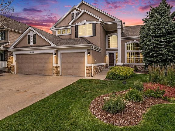 5 Bedroom 3 car garage STUNNER!!!! Backing up to trail and greenbelt with mature landscaping! Walk to the pool in 4 minutes, bike to town of Parker (2 miles) without crossing any streets in 10 minutes!! 3 miles to Cherry Creek Confluence. Absolutely GORGEOUS views, peaceful tranquility in the mornings under the covered patio enjoying the open space greenery, and marvelous Colorado sunsets in the evening. New (2023) AC and Furnace. Newer Roof (2020), Water Heater (2021), Exterior paint (2021). Gleaming hardwood flooring throughout the main level, 2-story formal living room. Formal dining room flows through to the kitchen with eat-in breakfast nook, family room with gas fireplace, main floor bedroom can be used as home office, laundry room and full bathroom great for guests or MIL on the main level. 4 bedrooms upstairs!! Primary suite overlooks the backyard trail and open space views. Vaulted ceiling, double door entry, 5 piece en suite bathroom with walk in closet. 3 additional bedrooms and hallway full bath with dual vanity. Partially finished basement offers an open floor plan to create a home gym, game room space, with still more room to finish or keep as storage along with the crawl space. You can't beat this location and will enjoy the town of Parker in Canterberry Crossings @ Villages Of Parker! New Ray J. Harvie Open Space across the street! Tons of shopping, dining and entertainment just 5 minutes away! Target, Home Depot, Kohls, 24-hour fitness, Library, Fika Coffee House, Dancing Noodle Thai restaurant, Portofinos Pizza, Parker Garage, Dougs Diner, West Main Tap Room, and MORE!!! 15 min to DTC, Park Meadows Mall, 35 minutes to DIA. * https://22316quailrun.com/ for 3D Tour *