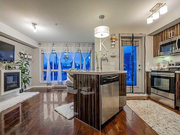 One bedroom condo in 223 North features quartz counters, stainless steel appliances, front-loading washer and dryer, cozy electric fireplace, and sunny west-facing balcony! Enjoy beautiful views of Fraser River on the rooftop patio. Downtown living provides you the conveniences of being within walking distance to shopping, restaurants, recreation center and The ACT (Arts Centre and Theatre), Farmer's Market during the summer, transit and West Coast Express - incredible 92/100 walkscore! One of the only units with parking space. Great opportunity for first time home buyers and investors!