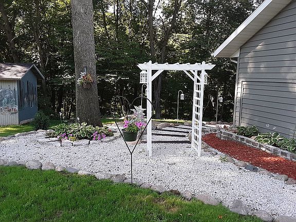 Main floor: Living room with open concept to the large kitchen with a counter to watch TV in the living room. There is also a dining area that can sit 6-8 people. 3 bedrooms upstairs (one large master bedroom suit), 1 den, 1 master bath and a large 3/4 bathroom. The kitchen and bathroom was updated in 2016. The basement is 95% finished (1120 sqft) with a large master bedroom downstairs with a 3/4 bath, laundry room, plenty of storage space, a library, entertainment room with a fireplace and bay window with recessed lighting. You can exit the basement into the breeze way to enter the backyard, the shop or the 2 car garage. A large heated and AC work shop, 16x20 with 2 large sliding glass doors to view the backyard forest and the main patio access to a 1450 sqft. patio, 1193 sqft of it with pavers and a 5 foot rock fountain/waterfall. Upgrades since house purchased 4-10-2018 Inside: 1. Added a large walk-in closet and Master Bath with a jetted tub, shower, double sinks 2. Created a Master Bedroom sitting area with new windows that overlook the patio and the private, wooded backyard (including cellular window shades) 3. Added a sliding glass door in the Master Bedroom for access to a new deck (see #1 below) 4. Built a bedroom & an additional storage area in the basement 5. Replaced the window in the basement bedroom with a 4’x8’ double pane window 6. Added 2 large 8’ sliding glass doors to the shop to enhance the view capabilities 7. Replaced fluorescent lighting in the shop with 9 recessed canned lights and dimmer switches 8. Added an air conditioner to the shop 9. Converted the fuse box in the shop to a new circuit breaker panel 10. Added a ceiling fan to the kitchen, changed the light fixture above the eating area and added separate switches in order to control the 2 kitchen lights separately 11. Added shelves to the entry coat closet as well as to one of the bedroom closets Outside: 1. Added a deck (8’x8’) off the Master Bedroom with stairs that lead to the patio area 2. Increased the useable area in the back of the house (west side) by 1,469 square feet of back fill & a retaining wall 3. Added a 1,193 sq. ft. patio with pavers and a waterfall/fountain behind the house (west side) 4. Added a 2nd patio with a burn pit at the end of the driveway 5. Added a storage area north of the North garage 6. Transformed the slope of the back lawn into terraced stairs descending from the front yard to the back patio alongside a shade garden of hostas and grasses 7. Added an arbor and rocked path as an entry to the terraced stairs & shade garden 8. Transformed the natural growth wooded area behind the house into a usable backyard by thinning out trees and brush and adding trails 9. Planted multiple trees, bushes and plants