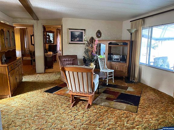 Live here while remodeling this 1608 sq ft 3 BR/2 BA 1978 built, all electric home on big corner lot w/ double-wide carport parking in Sundial's 55+, newly gated, MH park. The home is conveniently located next to the remodeled saltwater pool & other park amenities include a spa, billiards, fitness center & library. Home has covered front & back decks--ramp to back one; living (w/woodstove) & family rooms; big kitchen & dining area; big utility w/sink; 2014 heat pump for heating/cooling & 2020 water heater.