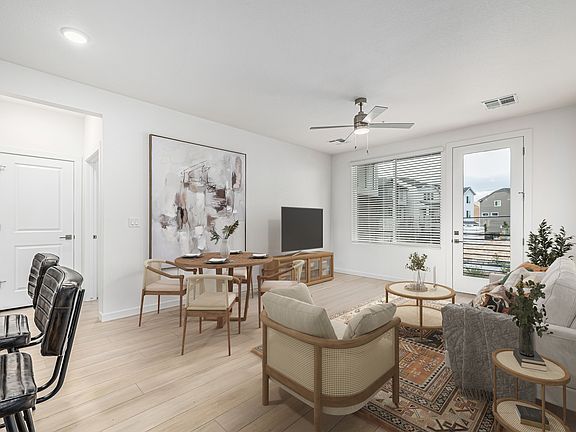 Enjoy low-maintenance living in this incredible ground-floor FORMER MODEL home, perfectly positioned near open green space with easy access to Interquest Parkway, outdoor recreation, and everything Colorado has to offer. This home is move-in ready and features a thoughtfully selected set of elevated standard features. Enjoy Kohler® fixtures, Samsung® appliances (including a washer and dryer), cabinet hardware, a designer backsplash, soft-close cabinetry, and more-all included at no additional cost. The Tymbre floor plan offers a smart, stylish layout with a welcoming entry that leads past a secondary bedroom, full bathroom, and laundry room. The kitchen features abundant cabinetry, a pantry for extra storage, and a central island with seating-flowing effortlessly into the living room and a spacious outdoor patio for relaxing or entertaining. Toward the back of the home, you'll find a second guest bedroom and a well-appointed primary suite complete with a private bathroom, dual vanities, and a large walk-in closet-offering comfort, convenience, and everyday luxury. Located in Colorado Springs' Victory Ridge community, enjoy a connected location with easy access to I-25, shopping, dining, and trails.