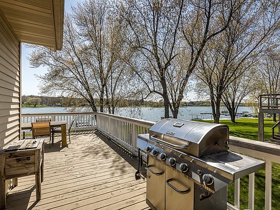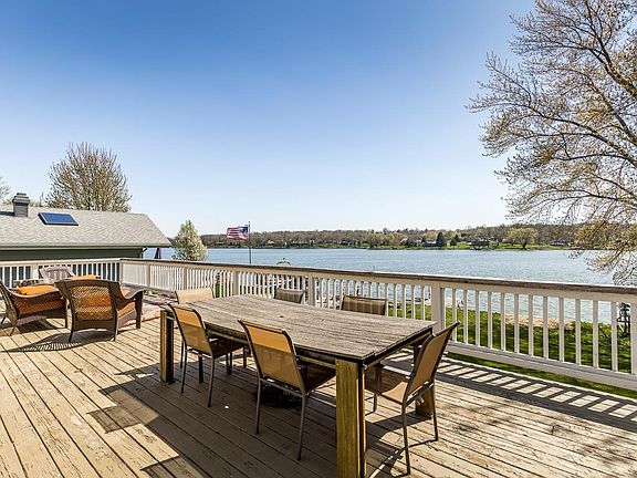 Lakefront home just in time for summer! Custom Built home with a main level master bedroom, gorgeous kitchen, & vaulted ceiling with a wall of windows over looking the lake! Sliding doors out to the large deck and recently finished shoreline with a cantilevered dock at the Waters edge. 3 bedroom/2 bath with main floor laundry and a tastefully finished walkout lower level.