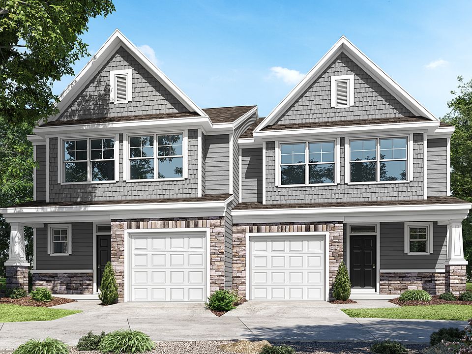 The Cary is a two story three bedroom two and a half bath end unit paired townhome with a one car garage first floor primary suite spacious family room and dining area covered rear porch an upstairs loft that overlooks the two story family room and an oversized unfinished storage area. Options available to personalize your townhome include a finished storage area a fourth bedroom either in lieu of the loft area or over the two story family room and a gas fireplace in the family room.
