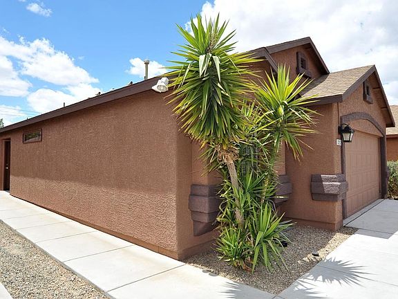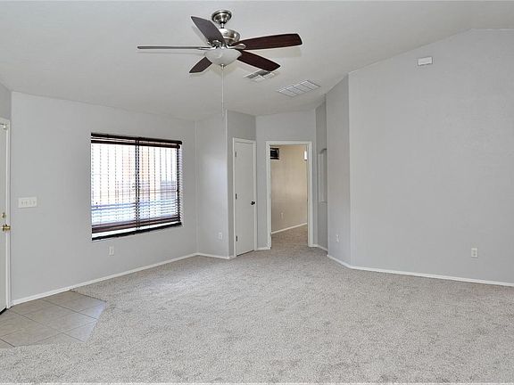 Beautiful contemporary 3 bed/2 bath home on cul-du-sac located in Tres Pueblos neighborhood. This spacious floorplan features high ceilings, fans in most areas, plus new finishes throughout including new carpet and interior fresh paint. Entry opens into great room with connecting den. Open kitchen with adjoining dining area features ceramic tile, laminate countertops, sliding door pantry closet, all appliances and plenty of natural light. Modest sized bedrooms with sliding closet doors. Jack-in-jill guest bath. Master bedroom features en-suite bath with walk-in shower and closet. Laundry room off of 2 car garage. Large backyard awaits your personal touch includes a covered patio and separate enclosed side yard. Nearby neighborhood park with a basketball court and playground