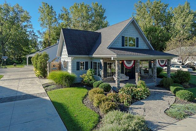 Amazing Port Clinton lake home at the base of Catawba Island featuring a heated pool, hot tub, 2/3 bedrooms & 2 full baths on a half-acre lot. Beautiful Australian Cypress hardwood floors throughout the well-lit open main level with a vaulted ceiling in the living room, granite counters in the kitchen, large bathroom, laundry & bedroom. The second floor features an open loft, bedroom & bathroom. The pool & hot tub are located on the fenced in patio between the house & a 30 x 50 outbuilding, creating a great area for summer parties, family get-togethers or just relaxing. The outbuilding has two 12' garage doors, a large storage area, a bar with pool table & skee-ball machine, a half bath & laundry. On the second level is a large studio apartment with a kitchen, bathroom, balcony & heat/air. The home is located directly across the street from Lake Erie & is near multiple marinas, golf courses, restaurants, shopping & Jet Express.