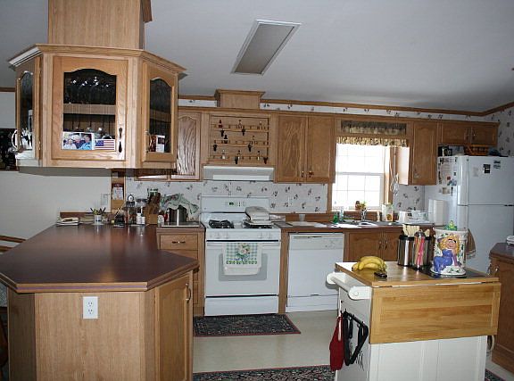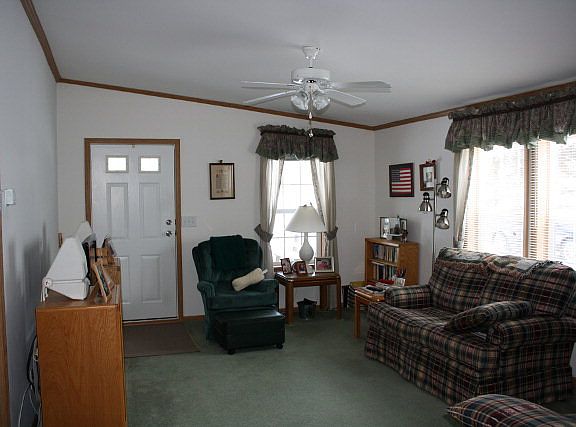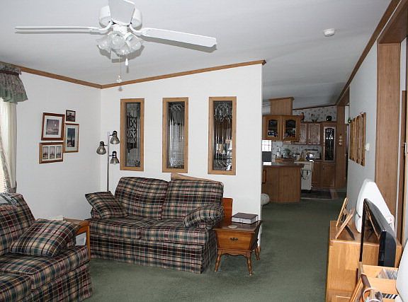 Nice, neat ranch manufactured home on quiet village lot. Spacious rooms with good floor plan. Large, open front porch. Spacious mudroom in rear of home; 100sq.ft; not included in square footage. Insulated, propane heated garage with good workshop.