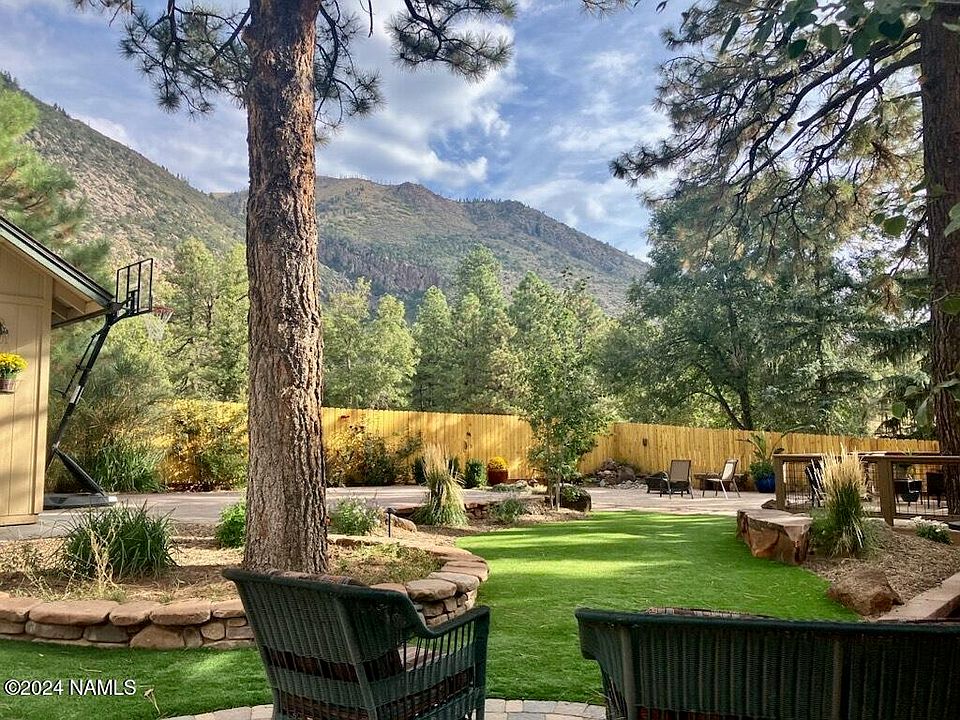 Nestled against the serene backdrop of the Coconino Natl Forest, this 4 bed/2.5 bath home offers the perfect combo of comfort and natural beauty. Step inside to find hardwood floors throughout the living areas and a cozy gas-assisted wood-burning fireplace in the spacious living room. A separate family room complete with a wet bar for entertaining.