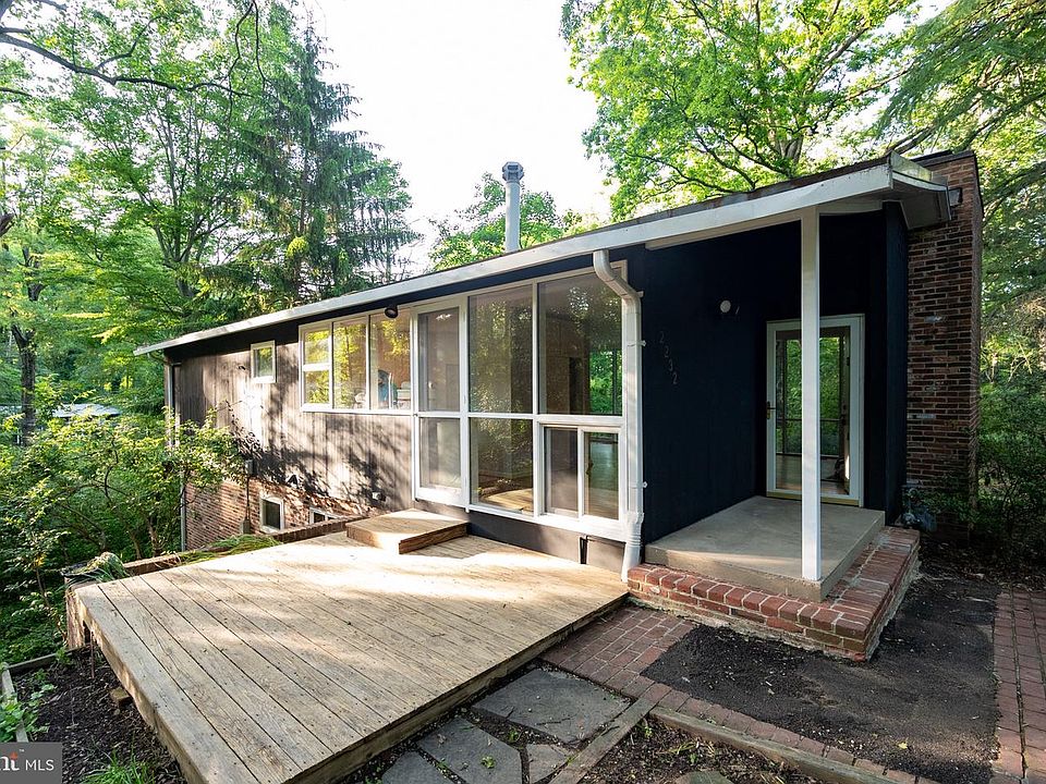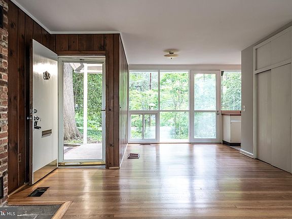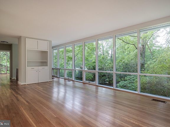 Fabulous Mid-Century Modern home in desired Hollin Hills. Two level home designed by renowned architect Charles Goodman on private, wooded .39 acre corner lot. Light filled living room with brick wood burning fireplace and built-ins. Large lower level family room with second brick fireplace and walk out to private slate patio with koi pond. Floor to ceiling double pane windows throughout most of the home. Two large bedrooms on main level and two additional bedrooms on lower level, one with unusual corner windows and teak bookshelves that convey. Newly refinished hardwood floors and completely painted. Open house Sat 5/21 2-4pm and Sunday 5/22 1-4pm.