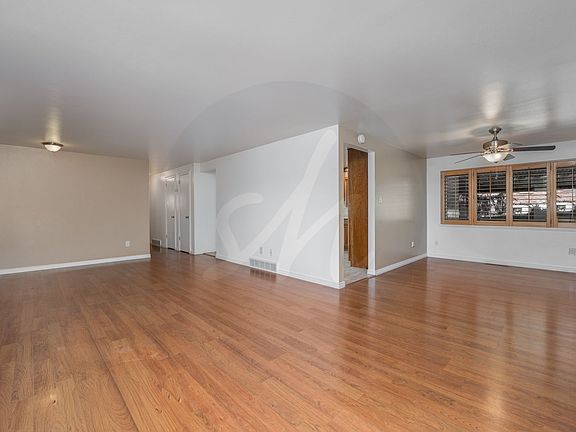 This classic Palmer Park home welcomes you with a stunning bay window and gas fire place in the living room with plantation shutters throughout. The main floor offers three bedrooms, two full bathrooms, and an open kitchen with stainless steel appliances and ample cabinet space. Abundant closets provide excellent storage throughout the home. The finished basement includes its own gas fireplace in the additional living area, bedroom with two closets, and third full bathroom. Outside, enjoy a large, shaded backyard with two covered patios, a deck, and storage shed. Additional features include a spacious laundry room with full-sized washer and dryer, two-car garage with built-in storage, and central air conditioning for year-round comfort. Close proximity to Palmer Park, schools and shopping.