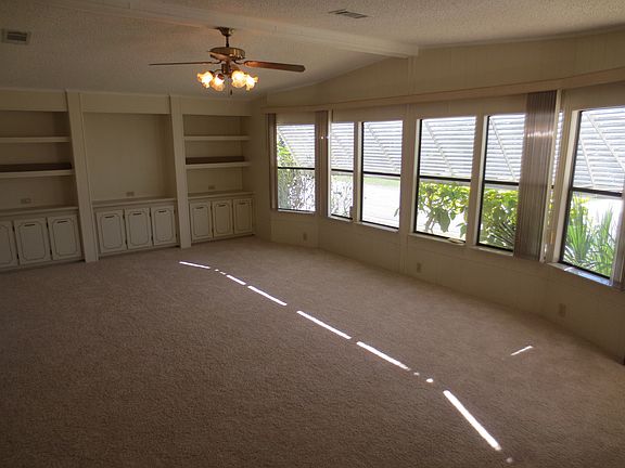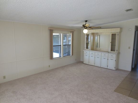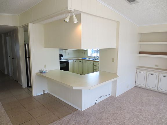This is a move in ready home, New carpet, fresh Paint throughout, large living room?dining are with a pass thru from the kitchen, both bedrooms are nice size, enclosed lanai, shed and carport,