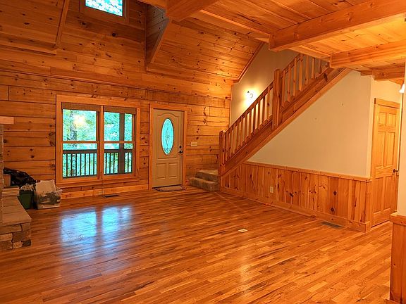 LOG CABIN 3/ 3 in a beautiful private setting near Franklin/Otto area. Paved road access to 1.33+/- acres that backs up to US Forest Service Land. Good long-range as well as pastoral views that could be improved with a few trees taken down. Also, includes bonus room for an additional sleeping area, as well as a 21'2"x13'3" Loft and an additional 240sq ft finished room in the basement. The kitchen, features Maple cabinets, a built-in pantry, granite countertops, and a breakfast nook. Hardwood floors in the Living/Dining room, Beamed ceilings, rock gas fireplace, 21'6" x 9. Master is located on the main floor with large bathroom and double walk-in closets. unfinished Attic room with Dormer and window. Double car garage, large utility room with indoor and outdoor entrance. Full unfinished daylight basement with inside stairs could easily be finished. Full-length porch on both upper and lower levels and large back porch. Mostly wooded lot with Paved driveway, Gazebo, Spring/Branch/Stream with water feature potential.