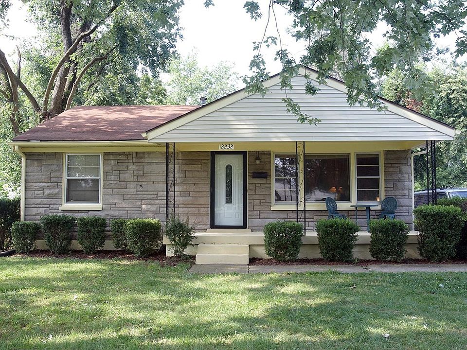 Adorable bedford stone ranch in a great neighborhood. This home greets you with a spacious living room that leads into your eat in kitchen. The eat-in-kitchen has tiled floors, wood cabinets with satin nik hardware, stainless flat top stove and fridgerator, movable dishwasher and gorgeous pendant light over the table. Off of your kitchen sits a cute little sitting area that is currently being used as an office. The 2 bedrooms on the main floor feature hardwood floors and are both great sizes. The full bath has been updated with a beautiful white cabinet sink, new toilet, lighting, paint and chair railing. This master bedroom is not a conforming bedroom but you could easily add a door. The exterior of the home has been freshly painted and offers a large back yard with spacious deck for entertaining. The detached 2.5 car garage is huge. The garage features industrial flooring, window AC unit and its own private electric panel with 220.