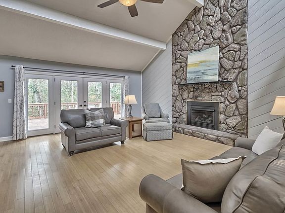 - Great Room: French Doors, Wetbar, Beams, Floors-Hardwood, Ceilings-Cathedral, Ceiling Fan