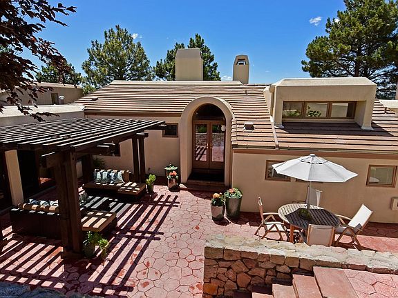 Beautiful maintenance free patio home with amazing mountain VIEWS and privacy! Enter through a stunning courtyard which is perfect for outdoor entertaining or relaxing. Interior is light & bright with natural lighting and amazing oak floors throughout. Master retreat features a wonderful sitting area, a private door to outside patio, wood burning fireplace, 5-piece bath & fabulous views. The spacious family room flows into the dining area which makes entertaining easy. Wood vaulted ceilings, additional fireplace and easy access to the back patio where you can take in the incredible VIEWS! The kitchen offers marble counters, maple cabinets, large center island with "wolf" gas stove and SS Kitchen Aid appliances! The over sized flex room could easily be an office or 3rd bedroom. Special features include drawer warmer in kitchen, alarm system, AC, finished 2 car garage w/ tons of storage, amazing landscaping/flowers & more! Perfect location to drive your golf cart to the course!