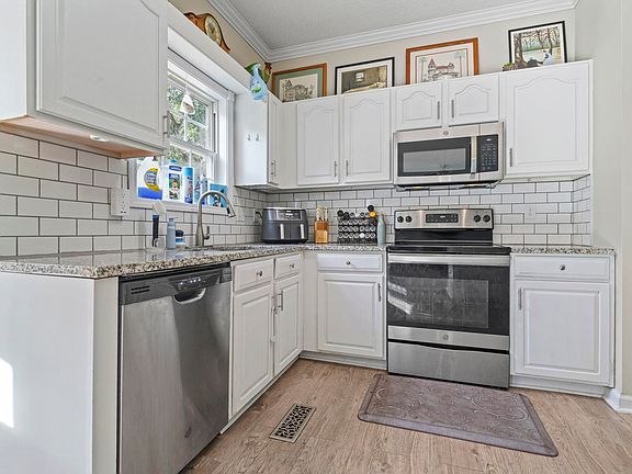 Insulated detached two-bay garageStylish lvp flooringUpdated kitchenQuiet cul-de-sacCozy carpetPrivate acresTile backsplash