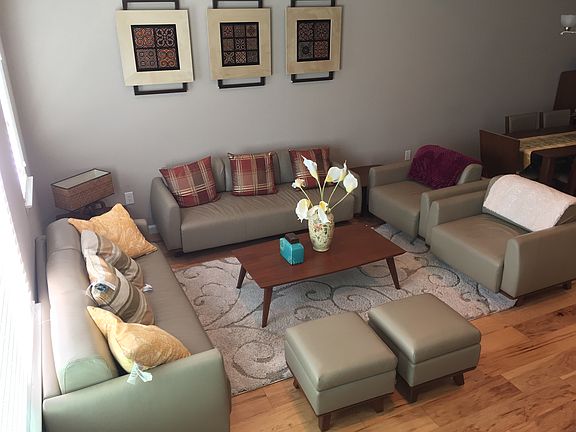 Luxurious living in MV! Newly built in 2011 by Rockwell Homes. Gourmet kitchen with rich cabinetry, s/s appliances and granite counters. Open floor plan with elevated and coffered ceilings in living room. 2 Master suites. Designer touches and finishes delivering a beautifully finished home. Upgraded hardwood floor all house and carpet on stairs. Walk to local shops and restaurants. Conveniently located with easy access to highways, Costco and Google. Details: 1st floor: Den, shower bathroom, closet and garage 2nd floor: 1 bedroom, 1 bathroom, kitchen and storage, living room and dining room 3rd floor: 2 EN master beds, 2 bathrooms and laundry.