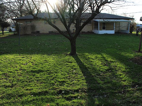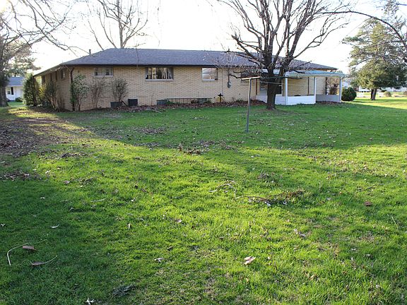 Ranch Style home located just outside of the city limits, two car garage plus work barn out back. Has covered patio, has a peach tree and grape vines. This home has a very large basement, half bath is located in basement. Beautiful back yard and is on just under an acre.