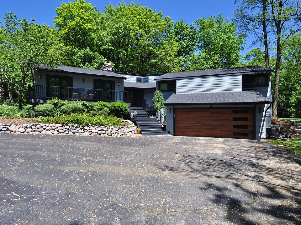 Contemporary flair and character throughout this amazing home with a desirable open floor plan, vaulted ceilings, gorgeous hardwood flooring, neutral color scheme, crisp white trim and doors, and fabulous natural light & views from the abundance of windows. Wide, double-door entry welcomes family & friends into the airy foyer. The enormous living room has a custom fireplace wall, multiple sitting areas, floor-to-ceiling windows, and two sets of French doors out to a large balcony. Formal dining room with elegant ceiling detail sits between the living room and the kitchen - an ideal arrangement for entertaining. The beautifully done kitchen has stainless appliances, painted cabinets, granite tops, center island with cook top & breakfast bar, fantastic property views, and an eating area with sliding glass doors out to the deck. There are 4 generous bedrooms on the main level. The master suite is a dream with soaring windows, huge walk-in closet and luxurious spa bath. The lower level adds even more living space with an enormous rec room finished in neutral colors, ample recessed lighting & windows, built-ins, tons of storage, full bath, and big laundry room. So many recent upgrades & improvements within the past 3 years including new roof & siding, new paint & carpet, refinished hardwood floors, new garage door, new water heater and more. The acre lot is private and wooded, with a long circular driveway and multiple spaces for outdoor living & entertaining. This is a fantastic value in Kildeer!