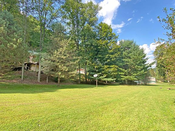 Classic hand-hewn log chinked style home, nestled in a privacy-plus setting along seasonal creek amidst 99 heavily wooded areas in the famous Hocking Hills. Two adjoining parcels. Premium 40x60 pole barn, large drive-thru garage, spacious decking,covered porch+walkout LL patio. No-outlet township-maintained road could provide for additional development. Home has not been used as a rental, but could be. Addl. sleeping space in loft & LL alcove. Newer drainage-design work. Abundant level recreation space below home, large cleared meadow areas as well. Longstanding trails & log roads to explore, scenic woods, ravines,ridgetops. Multi-use property close to Wayne National Forest, Tar Hollow & Hocking Hills State Parks. Custom wood doors, beamed ceilings+timbered framing, corner wood-burning FP