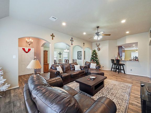 Come check out this well maintained 4/2/2 brick home in Bridgestone Lakes with all the upgrades including a 16 ft by 21 ft covered patio and 17 addition feet uncovered. This home is conveniently located near I-45 for quick access to Downtown Houston or The Woodlands. This home features high ceilings and elegant arches, large living room great for entertaining, large formal dining room, porcelain floors in kitchen and bathrooms, tile like wood floors throughout with no carpet, upgraded cabinets throughout, large primary with a wall of windows, large primary bath with dual sinks & separate garden tub w/ walk-in shower. All bedrooms are nice size with nice walk-in closets, solar screens on back of house and pre-wired for surround sound. Spend the day shopping in the historic district of Old Town Spring located about 10 mins from this home. Walking distance to Fox Elementary, one of Klein ISD's newest elementary schools. Come see today!