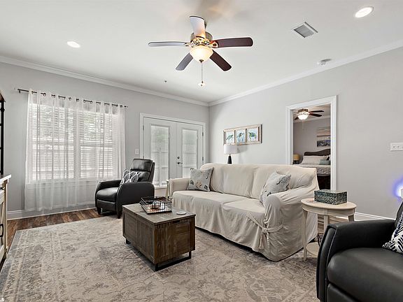 Location Location Location... Turn key ready, minutes away from beautiful white sandy gulf coast beaches, shopping, and OWA. Home is being sold furnished, furnishings are just over a year old. 2-bedroom 2-bathroom with luxury vinyl plank flooring throughout. Kitchen features under cabinet lighting, stainless steel appliances, and granite counter tops. Spacious rooms with crown molding throughout. Living room has French doors with built in blinds leading out to a fenced in back patio area great for grilling. HOA maintains the grounds, lawn, bushes, and covers the insurance for exterior of building. Community gazebo can be used for outdoor gatherings and is right next to the outdoor pool! Call today for your private showing.