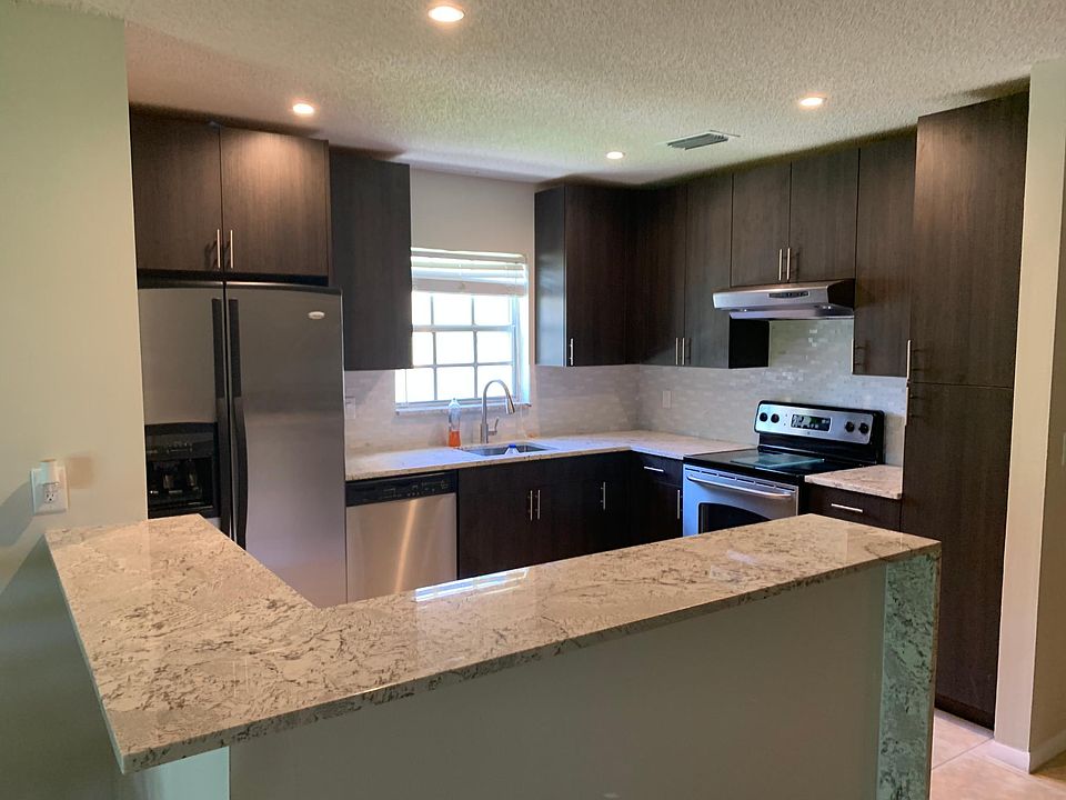3 Large bedrooms with large closets. Brand new, updated kitchen with stainless steel fridge, dishwasher, and stove. Updated bathrooms, master bath with rain shower. Washer and dryer in separate laundry room. Spacious screened in patio. Great school districts. This is a nice clean quiet neighborhood with community pool surrounded by Hammock trees. Rented furnished or not furnished. Tennant pays $75 background check through HOA