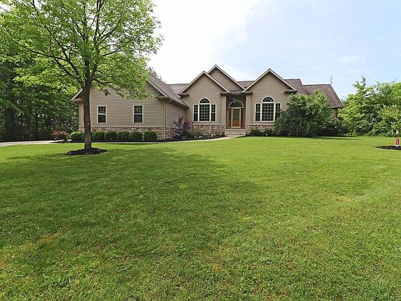 1st Time on the Market! One Owner! Set impressively on 2.85 acres, surrounded by woods, this custom built 4 BR Ranch has the all the space, style & amenities you've been looking for. Expansive, open floor plan with high ceilings, Amish crafted cherry cabinetry, white molding & trim, huge full basement with 2 finished rooms with closets, are just a few of the features of this wonderful residence. The floor plan features an elegant Foyer with 12' ceiling, front Living Rm/Study/Music Rm, formal Dining Rm with tray ceiling, palladian windows, gorgeous cherry Kitchen with upscale ss appl, granite counters, island, breakfast bar & walk-in pantry. Sunny Dinette & large Great Room wired for surround sound. Private Owner's Ste with 2 walk-in closets & luxury Bath. Fabulous yard with 25' x 40' Deck & 16' x 32' Kayak pool. Simply Perfect! For more information, please contact The Virginia Golan Group at!