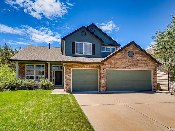 Welcome to your traditional, two story home! This 5 bedroom, 3 full bath home located in the heart of Canterberry Crossing backs to gorgeous open space and trails. The open floor plan has soaring vaulted ceilings and natural light. The kitchen features a beautiful bay window, granite, SS appliances, crown molding and a large island perfect for entertaining. The kitchen opens to the family room with a beautiful fireplace and built-in shelves. The stunning formal dining room features crown molding and opens to the living room. The main floor bedroom with French doors can be used as an office, playroom or bedroom and the main floor bathroom includes a shower. Upstairs there are 4 bedrooms, including the master suite with a 5 piece bath and walk-in closet. The secondary bathroom upstairs features dual sinks. The unfinished basement has unlimited potential or can serve as additional storage. Outside, enjoy the beautiful Colorado weather from your front porch and sunsets from the over-sized deck. Take a short walk to the community pool or bike to downtown Parker on the trails.