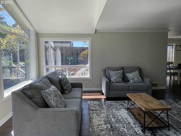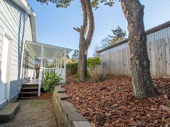 Excellent North Bend location!! Updated 3 bed/2 bath Open Layout with vaulted ceinlings in the living room and Laminate floors through the main living space, large picture windows overlooking the private and fenced back yard. Master suite with large closet and slider out to the back deck. Covered deck off of the kitchen, Attached Garage with off street parking and low maintenance landscaping in the front.