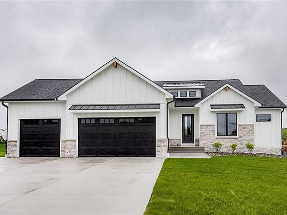 This stunning walkout ranch modern farmhouse sitting on a beautiful .68 acre lot is exactly what you've been looking for! You'll love the curb appeal w/ a white exterior & black windows/accents. A grand 15' entry welcomes you to an open floor plan w/ 14' ceilings in the living room & 10' throughout the rest of the main floor. White trim, oversized windows, black hardware/fixtures, shiplap & wood beam accents are some of the many quality features. The kitchen offers stainless appliances w/ gas range & hood, quartz counters, 10' island, huge walk-in pantry & custom cabinetry. Access the large covered, composite deck off the dining area. A large master en-suite offers double vanity, tile shower & huge walk-in closet connected to laundry. A 2nd bedroom, full bath & mudroom w/ lockers also on main level. The walk-out lower level offers 9' ceilings, family/rec area, large wet bar, 2 addtl bedrooms, 3/4bath & access to the covered patio. Many extras: irrigation, landscaping & dual zone HVAC!