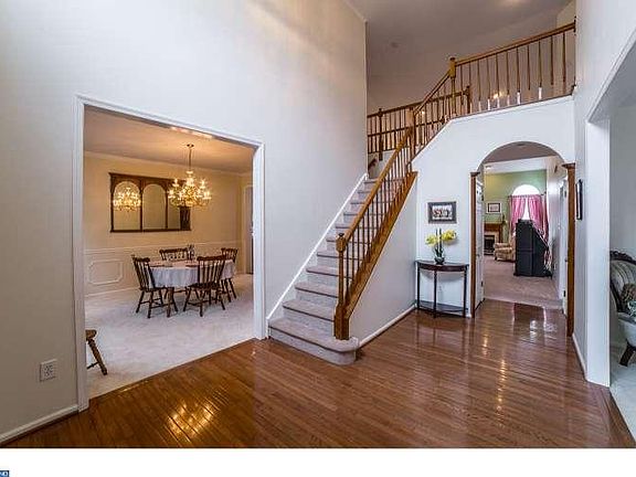 This large colonial classic is very well maintained with beautiful landscape, hardwood floors, and carpeting in each living space. Classic details include a second floor overlook, round top windows, and French doors. There's a wide array of ceiling fixtures from ceiling fans and recessed accent lights to tiered chandeliers. The kitchen is beautifully crafted with granite counter tops, wood cabinetry and hardwood floors. The open floor plan leads from the kitchen to the breakfast area across to the family room and to formal dining room. The fireplace is gas-operated. The bedrooms are spacious with new carpeting. The sizable master bedroom has its own sitting room, walk-in closets, and a bathroom equipped with a Jacuzzi tub and stall shower. The finished basement is available for any working or recreational space you may desire and includes separate storage area. From the breakfast room, a doorway to a sizable Brazilian hardwood deck and gazebo fit your needs for gatherings or for simple afternoon relaxation. This home exudes luxury, style, and comfort for every homeowner.