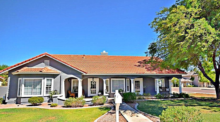 Check out this charming custom ranch style home located in the popular Citrus Del Ray subdivision in NE Mesa! Home was built with charm and quality with 2X6 Framing! Home is located on corner lot. Relax on your front porch-swing overlooking the greenbelt. Exterior recently painted. Interior features include: 4 bedrooms, 2 bath, 9ft ceilings, custom woodwork & crown molding throughout. This gorgeous kitchen has tons of counter and cabinet space, farmhouse sink, eat-in area, pass-through to great room, ceiling mounted stainless range hood, and stunning pendant lights. Cozy up next to the beautiful fireplace on those cold nights! Lots of storage including built-in cabinets in garage and outside storage shed. NO HOA!!! RV GATE!!!