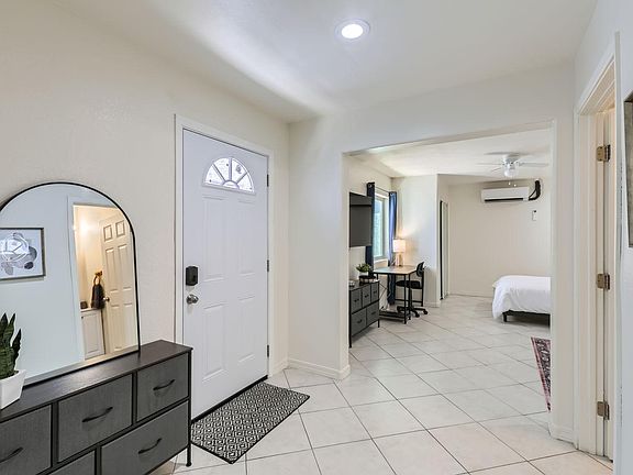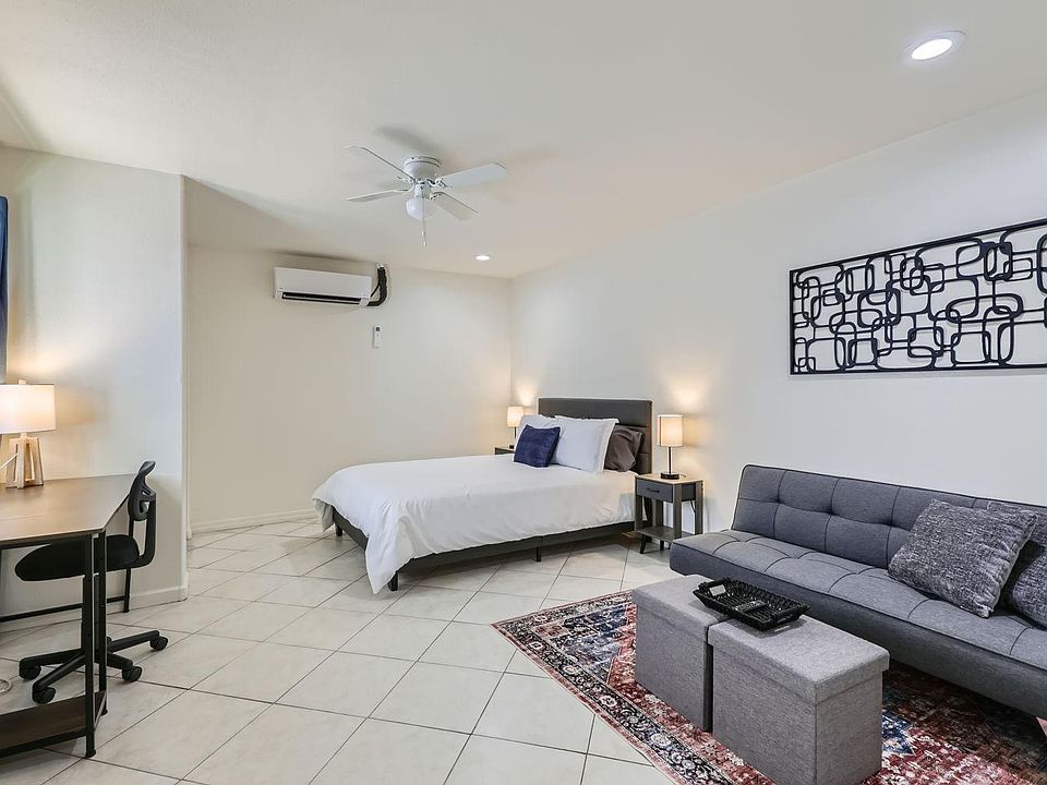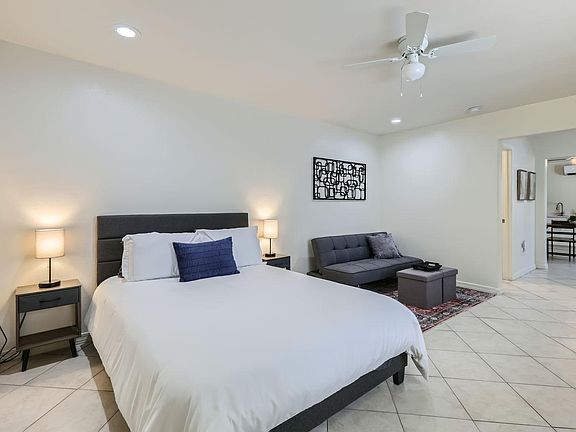 This fully furnished casita is located behind a main house and comes with its own parking spot. The living / bedroom area is equipped with a queen bed, 55 inch smart TV, and a desk and chair...perfect for nomadic workers! The kitchen area has a full size fridge, a plug-in electric burner, air fryer, rice cooker, and crockpot. There is also an a baker's rack that contains a coffee pot, toaster oven, and microwave. In-unit washer and dryer is included! I am open to a variety of lease lengths, ranging from short term renal to long term rental. Utilities and internet are an added charge.