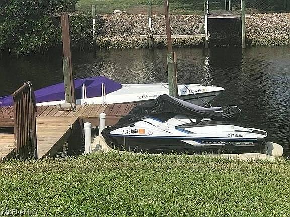 LOCATION! LOCATION! BOATER'S DREAM WITH DOCK IN PLACE-- LAUNCH YOUR BOAT AND JETSKI FROM YOUR SAILBOAT ACCESS HOME with no bridges to the Gulf of Mexico! DEEP WATER CANAL Access that will accommodate any SIZE boat and just MINUTES to the River! A short boat ride to the Famous Boathouse Tiki Bar and Grill! This beautiful home offers 2 large bedrooms/2 full baths with a Large Den! As you enter this beautiful home, you have a foyer and a very large family room/dining room! Kitchen is a chef's delight with 26 cabinets/6 drawers, lazy suzan & large pantry and skylight! NEW kitchen sink W/New disposal, NEW lighting, NEW fans and designer trayed ceiling!! Breakfast bar overlooking canal and a kitchen desk!! The Master Suite is 12X18 with walk in closet, shower and BRAND NEW CARPET! Your large Den has 6 windows overlooking canal where wildlife, cranes and fish are viewed! NEW upgrades-- NEW Plank tile, NEW interior paint, NEW lighting, NEW fans, Trayed ceiling, NEW commode, NEW blinds, and NEW EXTERIOR PAINT. The garage offers a New Washer/ Dryer, loads of cabinets/shelving for your hobbies!--Plenty of room to add pool! You could use this home as a vacation rental- AIRBNB $120/night!