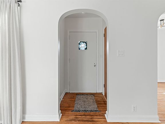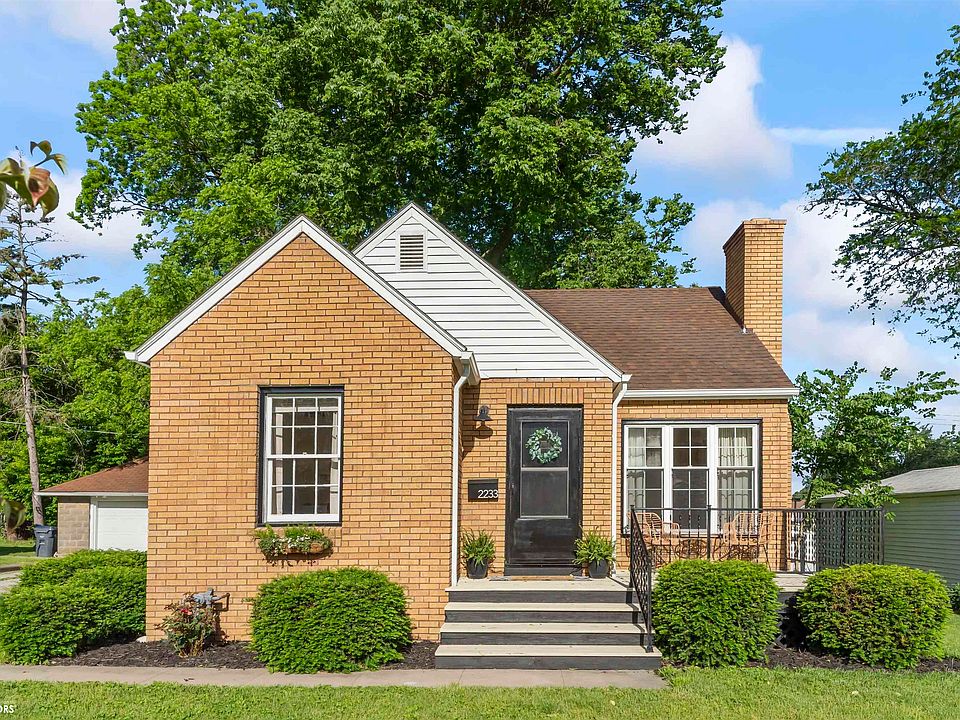 Charming brick cottage ready for you to move right in! The rounded doorways, hardwood floors, fireplace, and glass doorknobs are just some of the hints to the age and history of this home. You'll fall in love as you walk into the living room with large windows that overlook the park. There's a cozy dining area just off the kitchen. The kitchen has been redone and includes butcher block counters, subway tile black splash, and black appliances. Two bedrooms down the hallway with an updated bathroom between. The attic has been finished off into the third bedroom or flex space to fit your lifestyle. Kick back on the front porch, or walk over to the park. Easy to maintain yard with a detached 1 car garage.