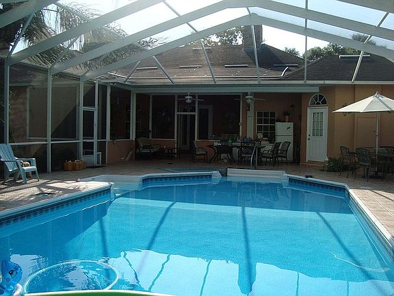 This home has a beautiful brick fireplace in the family room. The vaulted ceiling the kitchen and family room soars up 17'. All other room are 12 Ft high. The dining room or office space has built-in library shelves, Each extra large bathroom has a separate toilet area. The bathroom off the 4th bedroom is handicap accessible and has a pool entrance. It would make a great mother-in-law suite. The irrigation system is on well water which saves $$ every month. The laundry room is extra large with cabinets a large countertop, laundry tub and hanging space. The spacious kitchen has new granite counter tops and a beautiful bricked in Jenn-air oven- microwave. the stove is a jenn-air downdraft system. Crown moldings throught-out the house. If you love crafts, need a playroom or want a media room, this house has a large 20 x 30 room with a storage/bonus room above it. The extra large detached garage also has a workshop and second story storage room. There is even the "invisible fence" already installed for your dogs. There is room to entertain in the 2000 sq foot enclosed and tiled pool area with a summer kitchen. The pool is 18 x 40 and 8ft deep at one end. The front of the house is completely brick, the back and sides are stucco. Huge fenced backyard.