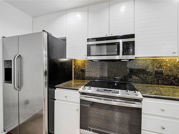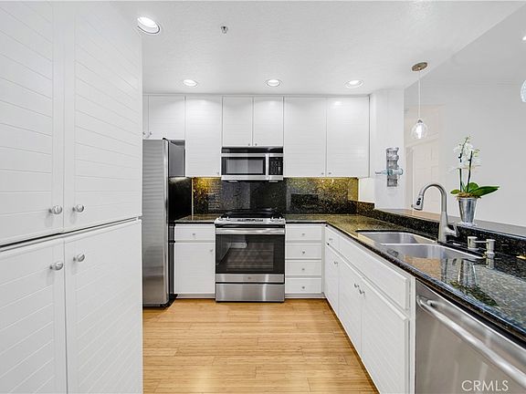 Home for the holidays!!! Enjoy resort living at this posh and luxurious complex - The Metropolitan is Irvine's hidden gem. A guard-gated community with lush tropical landscaping surrounding the beautiful property, pool, spa, clubhouse and fitness center. This beautiful 2 bedroom 2 bath unit with bonus room has 1,269 sq ft. of living space and sits in one of the best locations in the complex. Fantastic pool views from the open floor plan. There is bamboo flooring throughout the bonus room, kitchen and living room. Granite counters in the kitchen and bathrooms, All appliances included even the washer and dryer. Recessed lights throughout, New carpet in bedrooms and walk in closets. Glossy white cabinets throughout, Central heat and air. Breakfast bar with teardrop lights. Primary bathroom has double sinks, a separate shower and oversized tub. Guest bath has shower/tub combo. Other features include impressive 9-foot ceilings, crown molding and one of the largest patios in the complex. The Metropolitan HOA added security camera systems throughout the property in 2022. Water and gas included in HOA dues. Side by Side parking spots close to elevator. Dog walking park around perimeter of buildings. Minutes to JWA, UCI, Shopping, Restaurants, 405 and 73 Freeways, and a short drive to the beach!!! Also a great buy for investors. You will love living here!!!