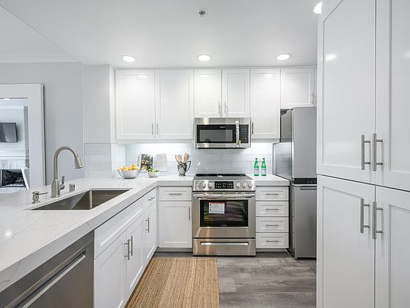 Beautiful upgraded condo located in the heart of Irvine. Property can come furnished or unfurnished and 1 small dog or cat is allowed per association. Everything has been completely remodeled. Kitchen has white cabinetry, quarts counter tops and all new stainless steel appliances. Home has a den that can be used as a second bedroom. All utilities are included except electric. Two parking spots included in underground parking. 3 6 and 12 month lease terms available at different rates.