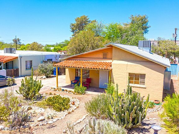 * Welcome home! This charming 3 bedroom, 2 bath house has east/west exposure providing natural lighting. There are beautiful wood beam ceilings in the living room and all of the bedrooms. The living room has built-in shelving for your favorite collectibles, along with a cozy, built-in window seating area. There is a combination of carpet, tile, and concrete flooring. Home is located on a generous sized lot with flagstone pavers, mature trees, citrus trees, and low care desert plants. There are two additional storage/work sheds that provide adequate space for your latest projects. Hot water heater and Furnace/Air conditioning replaced in November, 2020. Property conveniently located in Central Tucson.