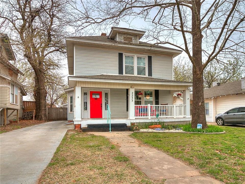 Adorable historic home that has been meticulously cared for and upgraded over the past couple years. Even your most picky buyers will have to stop in and take a look. Beautiful character can be seen before you even step food through the front door. You can't miss the incredible refinished original hardwood flooring that has done nothing but aged well. You will be greeted with a staircase and stairwell up to your three bedrooms and upstairs bathroom with the same original hardwood floor throughout. Custom industrial style mantel was installed with accent lighting illuminating a tiled fireplace will always be a topic of conversation. Through the second living area and dining area into the kitchen that has a beautiful and playfully colorful cabinets and knobs. Out the back windows and door you will see your very rare 3 car garage with large driveway. This is perfect for those that want the historic home but want a large garage too. Stop in and relax. You've found home.