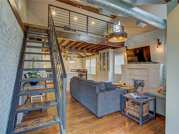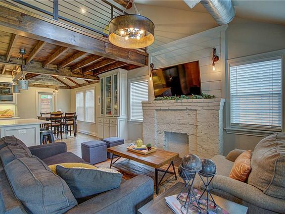Check out this complete Industrial Farmhouse remodel in the Urban Core! View floor to ceiling windows as you move from foyer to living room, boasting a vaulted ceiling with exposed ductwork and mock fireplace. Kitchen includes custom cabinetry, quartz countertops, subway tile back splash, stainless appliances, farmhouse sink, kitchen island/eating bar. Master bedroom with highlighted ceiling features large master closet and en-suite bath with luxurious double sink vanity, walk-in shower and free standing tub. Note the two bedrooms and two full bathrooms off the kitchen. Take the iron and wood accented stairs to the bonus loft/office space. Utility room with plenty of built-ins. Walk out to the covered patio with outdoor sink, concrete counter top/bar and natural gas hookup with hood vent for grilling! Enjoy the fire pit, bonus covered outdoor area and additional back yard, perfect for pets. Motorized iron gate plus hard wired camera system for security. 2-car garage with extra storage.