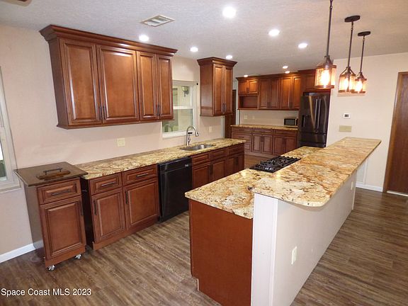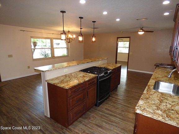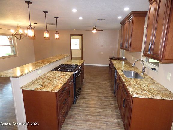MOVE IN READY SOLAR POWERED HOME! Features include 2022 Trane HVAC, 2021 Roof, NEW Interior and Exterior Paint, New Vinyl Plank Floors Throughout, 2019 Kitchen Remodel with Stainless Steel Appliances, Custom Cabinets, Granite Counters, Butler's Pantry, Wood Burning Fireplace, Screened Porch, 2023 Plumbing, Impact Windows and Hurricane Shutters. Both Bathrooms also Remodeled and a Huge Fenced In Backyard. Sellers removed wall of third bedroom to increase family room, wall can be added back if a third bedroom is needed. Hurry - this home is a must see!!!